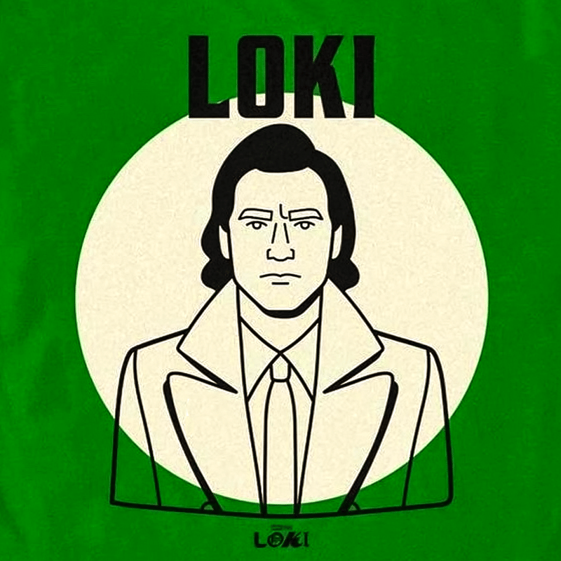 Warna khas Loki yaitu hijau juga menjadi latar dari poster karakter Loki di sini.