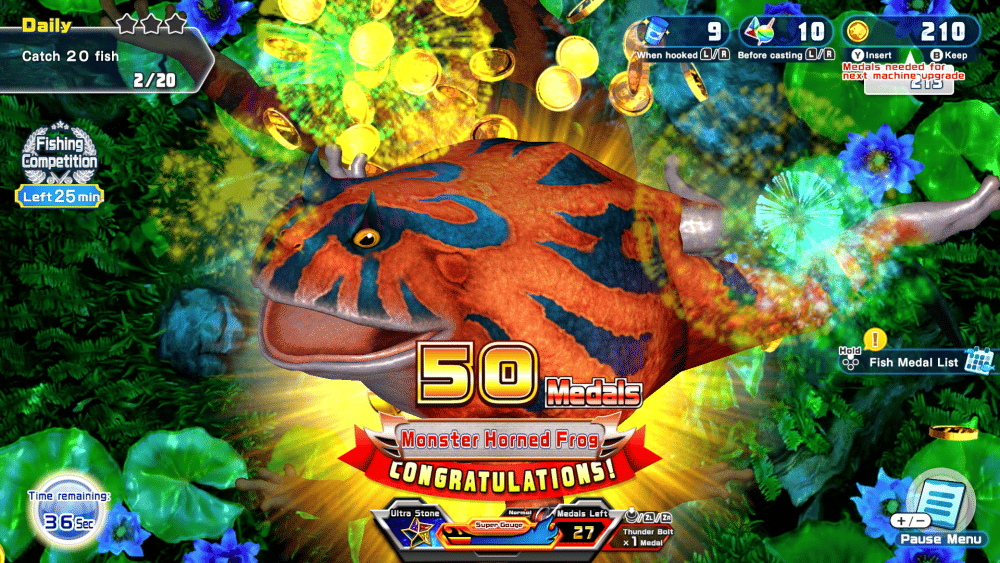 Kamu bisa mengikuti turnamen memancing dengan total empat pemain secara online! Dalam mode ini, kamu dapat memanen victory stars yang akan meningkatkan Angler Level-mu, sehingga kamu bisa memburu peringkat tertingginya!