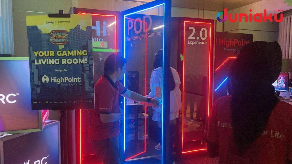 Kamu juga bisa mencoba HiPod 2.0 yang semakin kedap suara dan pas buat main game dengan damai di booth HighPoint!