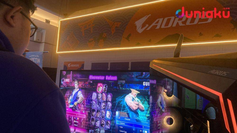Di booth AORUS, kamu bisa mencoba langsung kapasitas produsen hardware komputer ini dengan main Street Fighter 6!