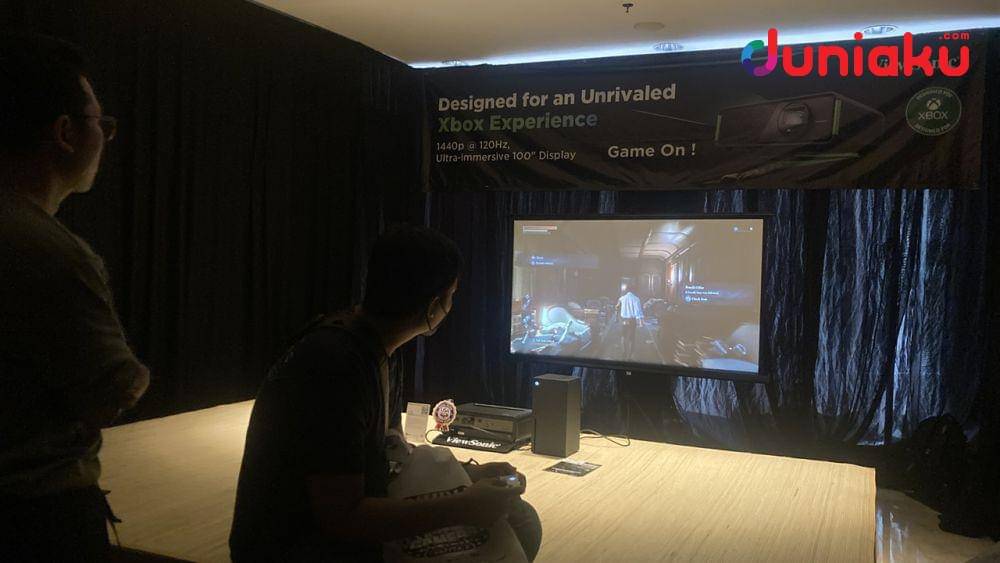 Di booth ViewSonic, kamu juga bisa mencoba langsung Lies of P dengan proyektor dengan refresh rate 120Hz yang kemampuan resolusinya mencapai 2K!