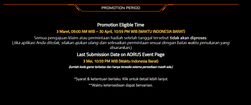 - Beli produk GIGABYTE atau AORUS yang memenuhi syarat dari distributor resmi di Indonesia