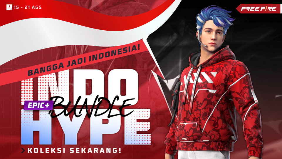 Selain itu, khusus di bulan kemerdekaan Indonesia, Free Fire menghadirkan bundle khusus bertema ‘Bangga Jadi Indonesia’. Bundle baru ini dihasilkan dari kolaborasi Free Fire dengan YouTuber Frontal Gaming. Sesuai dengan temanya, bundle ini akan hadir dengan nama IndoHype yang membawa nuansa serba merah putih khas Indonesia!