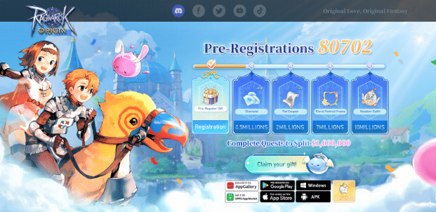 Dalam rangka memeriahkan Pre-Registrasi Ragnarok Origin, tim Ragnarok Origin mengadakan event spesial dengan menyajikan beragam hadiah spektakuler senilai total 1 Juta USD (15 miliar Rupiah)!