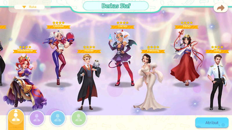 Bukan cuma mengatur dekorasi interior, kamu juga punya kontrol penuh buat mengatur staff lho! Mulai dari memilih staff yang cocok dengan kebutuhanmu, mengatur tim dari staff-staff terbaik, hingga promosikan staff dan menaikan atribut dari setiap staff milikmu!