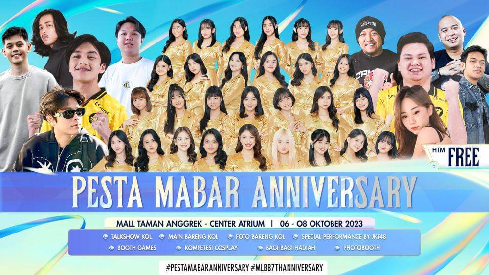 Dalam rangka memperingati hari ulang tahun yang ke-7, Moonton Games akan menyelenggarakan event besar bertajuk “PESTA MABAR ANNIVERSARY” pada tanggal 6-8 Oktober 2023.