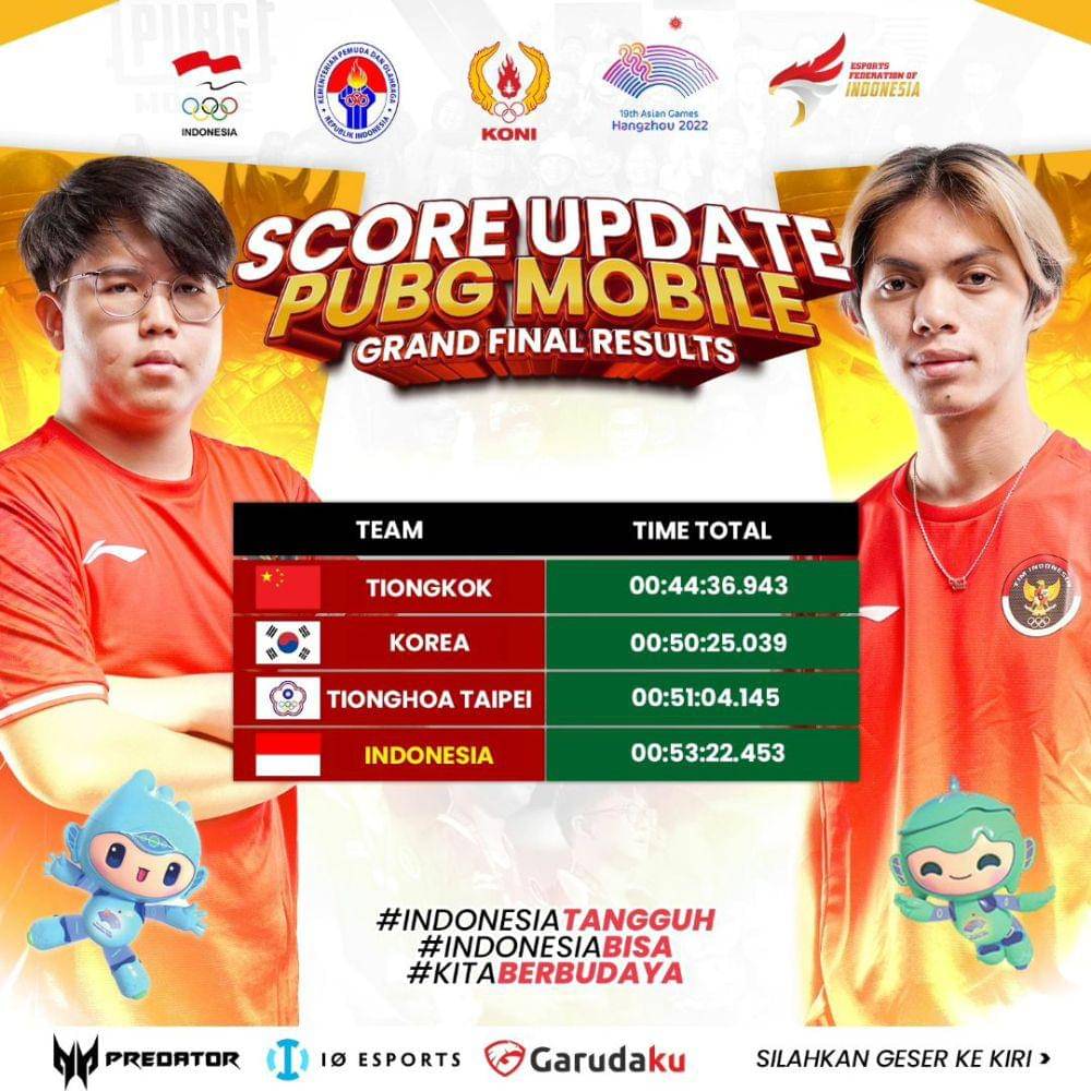 Timnas PUBGM Indonesia Duduki Peringkat 4 Asian Games 2022 Hangzhou!