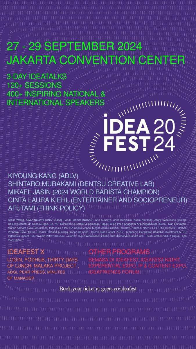 IdeaFest 2024 hadir kembali pada tanggal 27-29 September! Apa saja rangkaian acaranya kali ini? Temukan di sini!